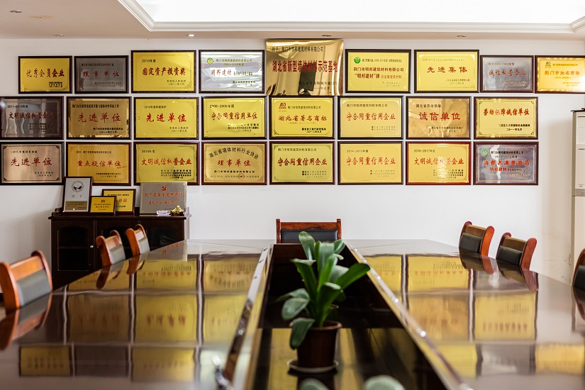 “明邦”商標被認定為“湖北省著名商標”,同時被評定為“湖北名牌”產(chǎn)品,企業(yè)同時被評定為“湖北省重合同守信用企業(yè)”、“湖北省新型墻材產(chǎn)業(yè)化示范基地”和“荊門市循環(huán)經(jīng)濟示范企業(yè)”,公司通過了“綠色建材評價標識證書”、“GB/T 45001-2020職業(yè)健康安全管理體系認證證書”、“GB/T 19001-2016質量管理體系認證”、“GB/T 24001-2016環(huán)境管理體系認證證書”。
